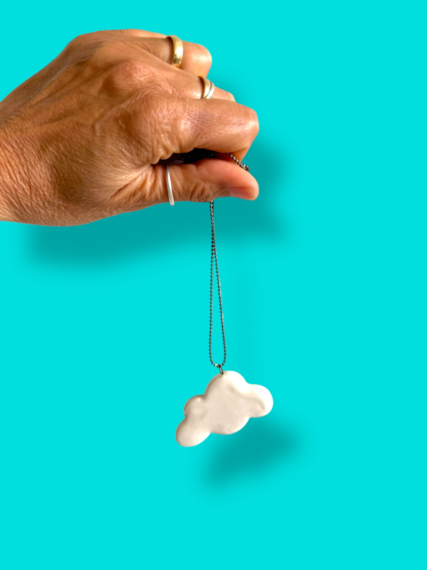 A volte sei un temporale, ma oggi sei pura morbidezza. Questa collana a forma di nuvola in ceramica fatta a mano è qui per fluttuare sopra tutto, aggiungendo un tocco sognante e giocoso a qualsiasi outfit. Leggera, semplice e un po' poetica, perché a volte, il posto migliore in cui stare è con la testa tra le nuvole.