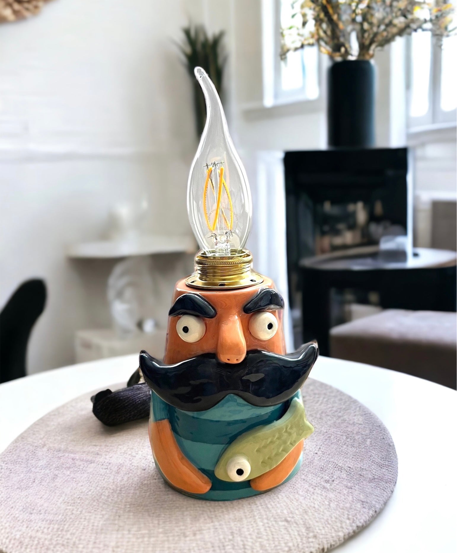 Ogni Pescatore Baffuto è un'opera d'arte unica, creata su ordinazione con cura e dedizione. Per questo motivo, non ci saranno mai due lampade esattamente uguali, garantendo che ogni acquirente riceva un vero pezzo di ceramica, intriso di originalità e carattere.