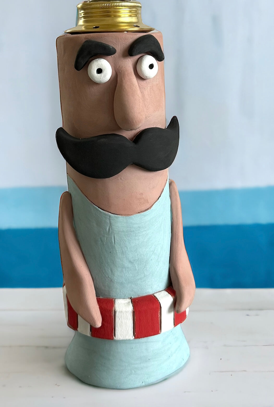 Nel cuore dell'arte ceramica, il nostro nuotatore baffuto prende vita, una lampada unica nel suo genere, realizzata artigianalmente con passione.