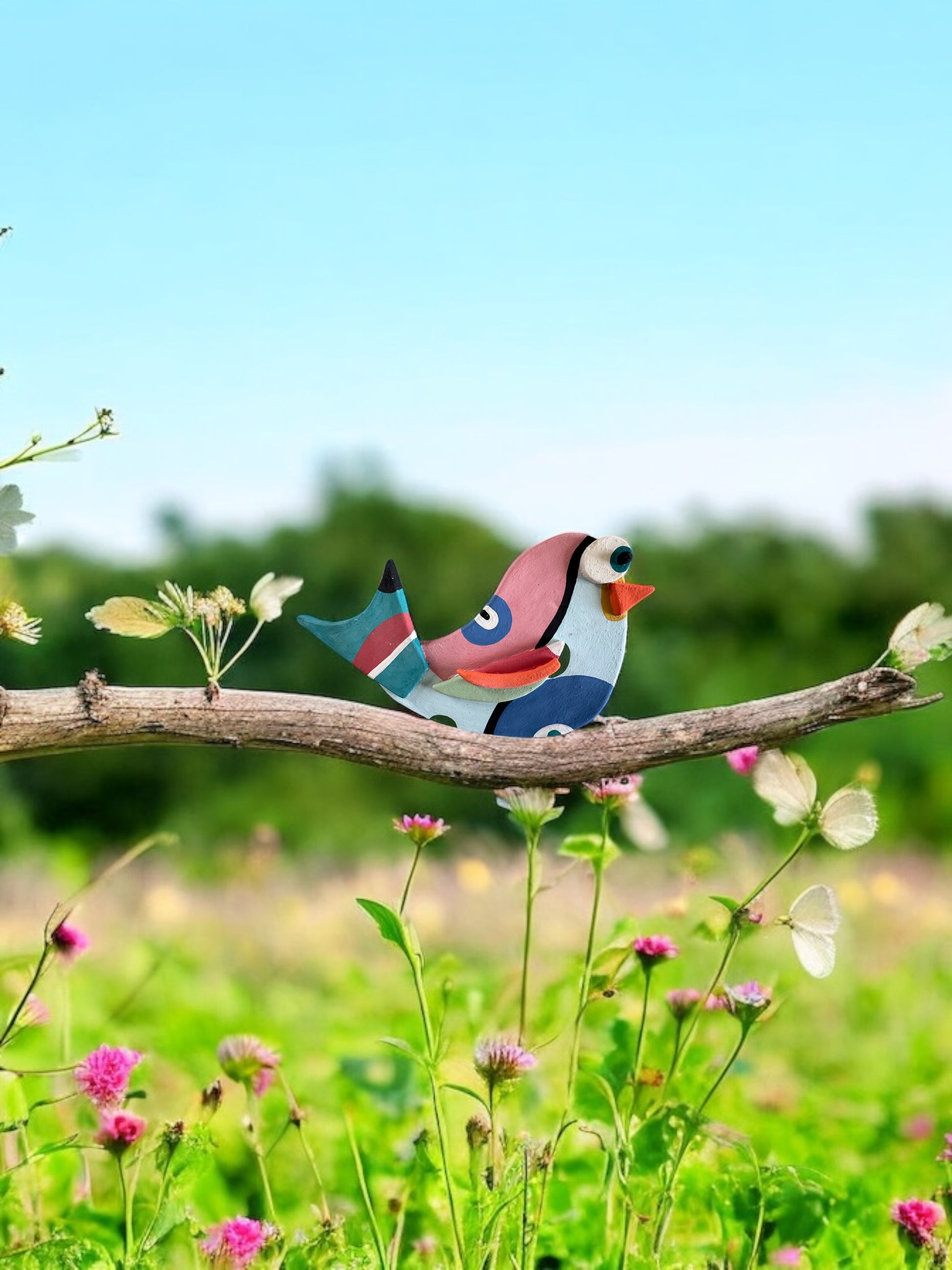 Realizzato e dipinto a mano, ogni uccello è una creazione unica nel suo genere, ricca di personalità e fascino giocoso. Piccole variazioni di colore e forma rendono ogni pezzo davvero unico.