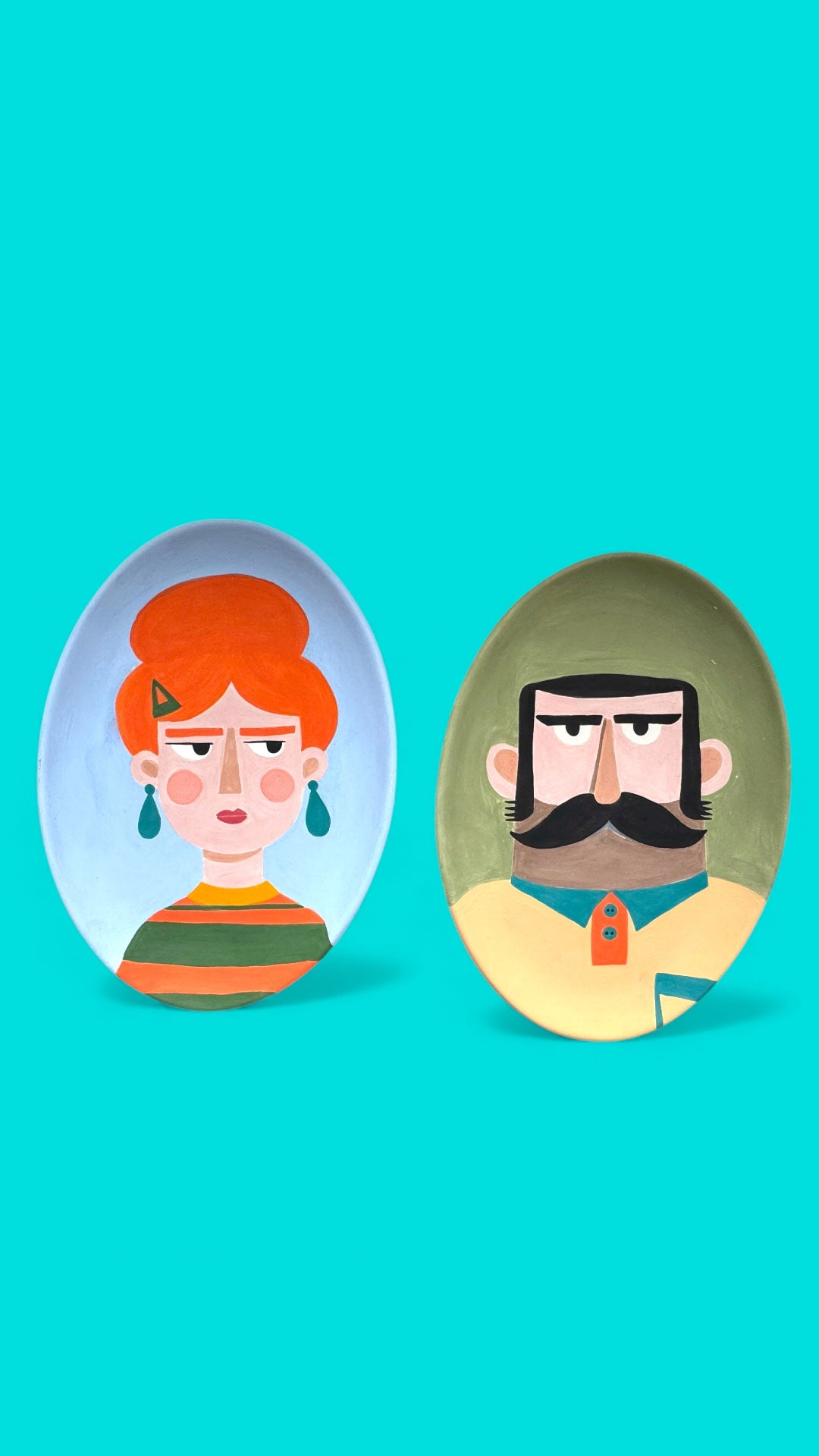 Hand-Painted Ceramic Plates – Oval Couple Edition